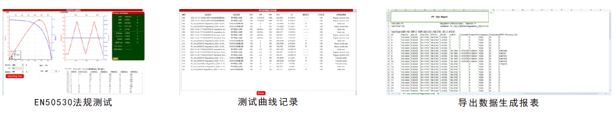 • 内置EN50530、SANDIA、NB/T32004、CGC/GF004、CGC/GF0355种法规测试程序,并生成测试报表;